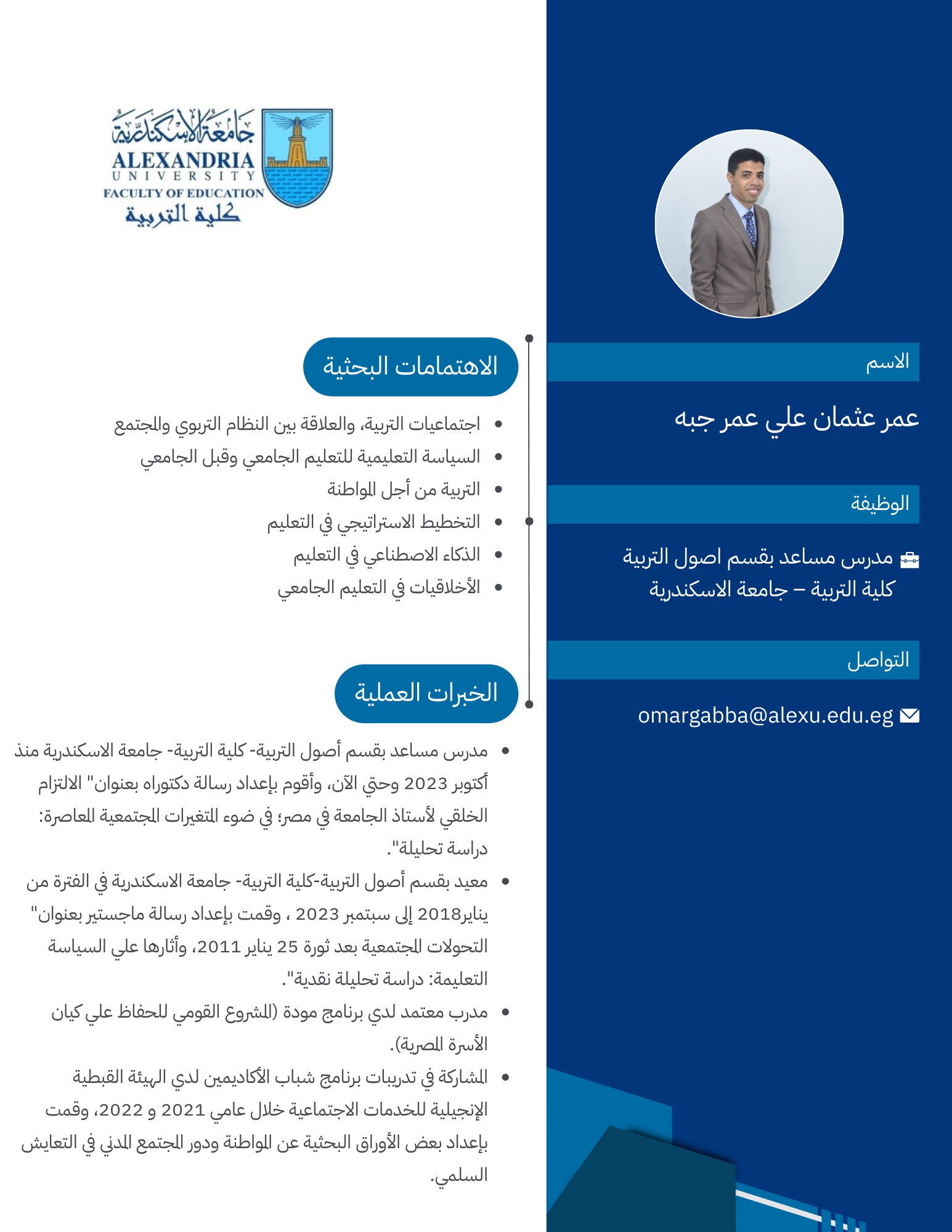 أستاذ مساعدالإيميل: عنوان البريد الإلكتروني هذا محمي من روبوتات السبام. يجب عليك تفعيل الجافاسكربت لرؤيته.
