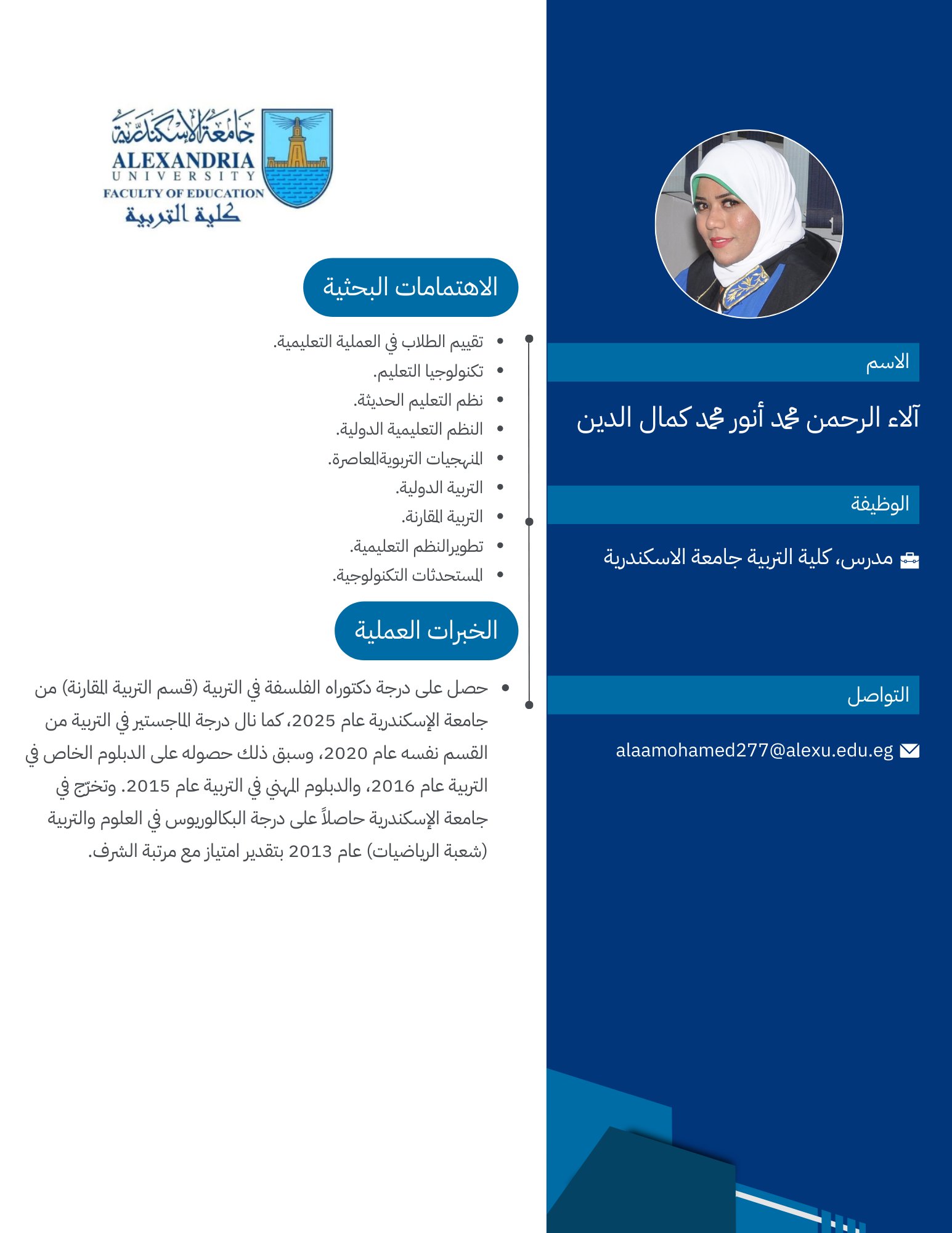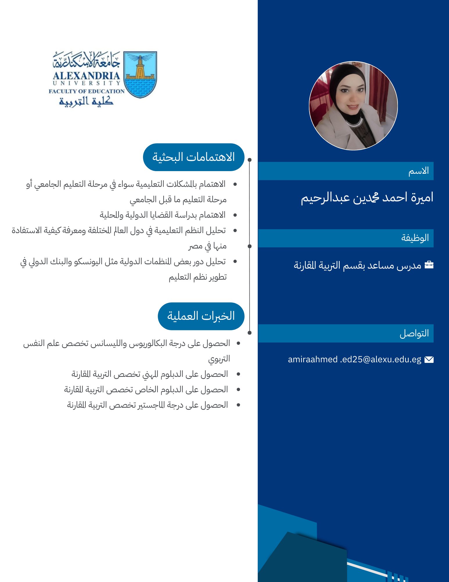 مدرس مساعدالإيميل: amiraahmed عنوان البريد الإلكتروني هذا محمي من روبوتات السبام. يجب عليك تفعيل الجافاسكربت لرؤيته.